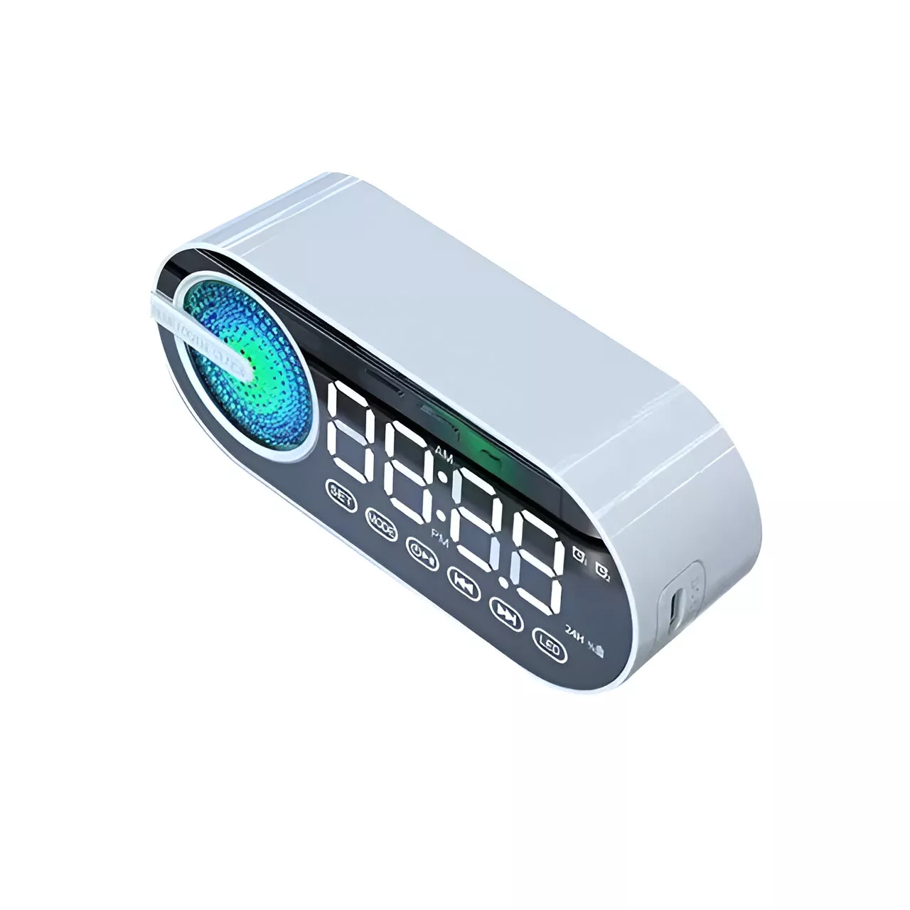 What sets this speaker alarm clock apart from others is its multifunctionality. Not only does it offer powerful 3D surround sound, but it also integrates a large mirror LED display and RGB lighting—all in a sleek, portable design. Its wireless connectivity and TF card playback options add even more convenience, while the FM radio lets you switch from streaming to classic radio stations at any time. This speaker clock is more than just a gadget—it’s a versatile addition to your daily routine.