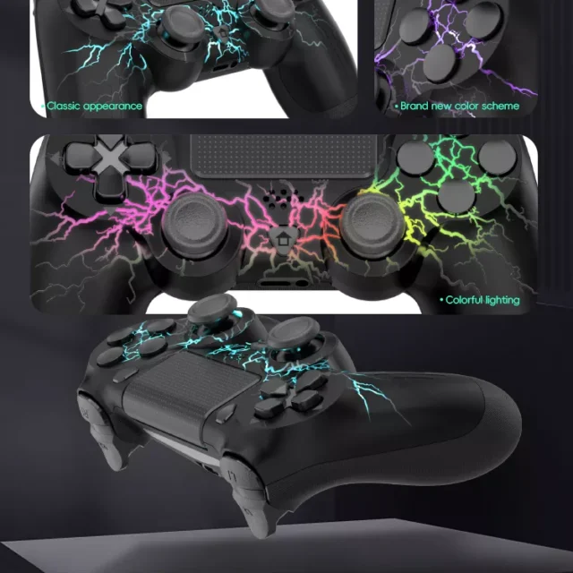 Take control of your gameplay like never before with this high-performance wireless gaming controller. Designed for PlayStation 4, PS4 Pro, PS4 Slim, PC, and Android devices, this gamepad offers a smooth, responsive, and immersive gaming experience. The built-in LED lighting system lets you customize colors for different games, creating a visually stunning effect that enhances every session. With advanced motion-sensing technology, dual vibration motors, and a sleek ergonomic design, this controller is the perfect addition to your gaming setup.