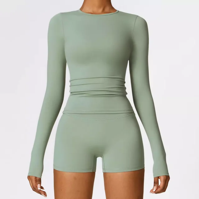 Whether you’re in a power yoga session, warming up for a run, or cooling down after a gym class, this long sleeve shirt delivers on performance and style. The full-length sleeves offer added coverage without overheating, making it ideal for every season. Available in timeless shades like black, gray, blue, and green, it pairs easily with any leggings or shorts in your wardrobe.